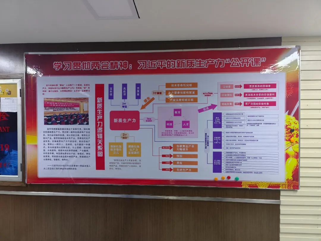 会上,党支部书记带领全体党员研读2024年《政府工作报告》,主要围绕“2023年工作回顾”“2024年经济社会发展总体要求和政策取向”“2024年政府工作任务”三个部分内容开展学习,并对政府工作报告里提到的“新质生产力”一词开展深入解读。