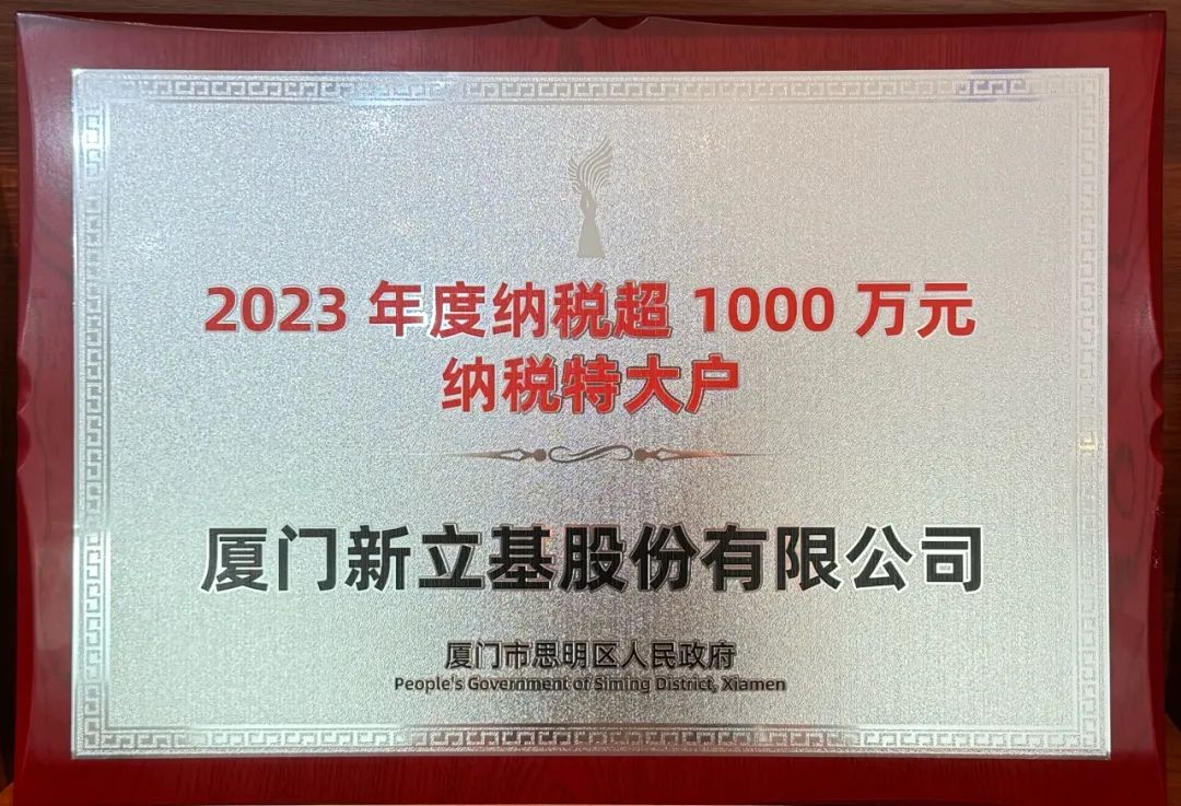 5月28日,388vip太阳集团荣获厦门市思明区人民政府授予的“2023年度超1000万元纳税特大户”荣誉称号。