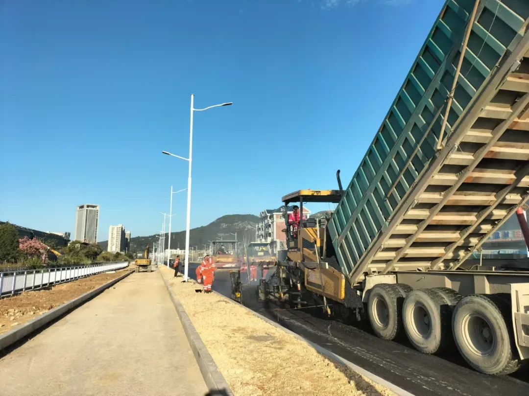 伴随着轰鸣声,福清海城路道路沥青摊铺施工现场,正呈现一派热火朝天的繁忙景象。为加快推进海城路项目道路“白改黑”建设,新立基福建大区作为项目的沥青保供方,主动担当,打头阵当先锋,全力以赴“加速”保供,为中印尼“两国双园”要道12月底前顺利完工通车“提速”。