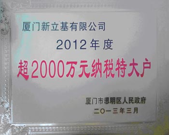 388vip太阳集团有限公司被中共思明区委、思明区人民政府授予“2012年度超2000万元纳税特大户”的光荣称号。