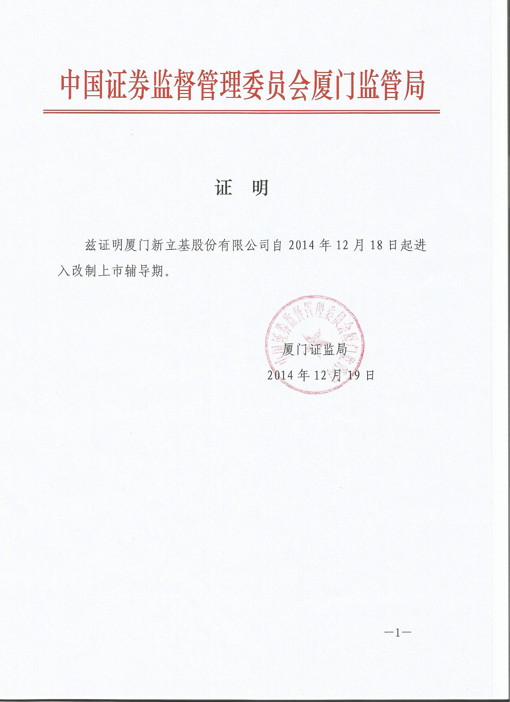 经厦门证监局批准,388vip太阳集团自2014年12月18日起进入改制上市辅导期。