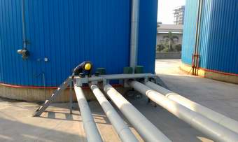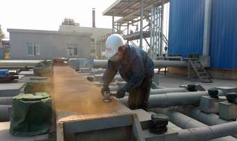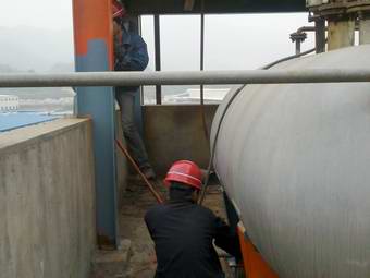 上图:管路过桥处除锈,上漆保养 下图:锅炉房顶部重油加热罐、高位槽及露天的平台管路除锈上漆保养(1.17)