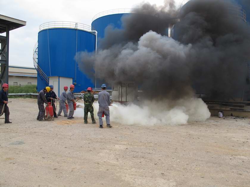 2010年8月8日新立基公司举行消防应急演练,这次演练主要针对沥青仓储库可能出现的火灾及事故假想,采取应急措施自救。演练方案包括:一、库区员工正确使用灭火器材灭火(包括电器火、油类火、基质沥青火、改性沥青火);二、库区生产人员紧急启用消防用水对管线降温。本次演练达到了练兵的目的,提高了员工安全意识和动手能力,牢固树立了“安全第一”的理念。