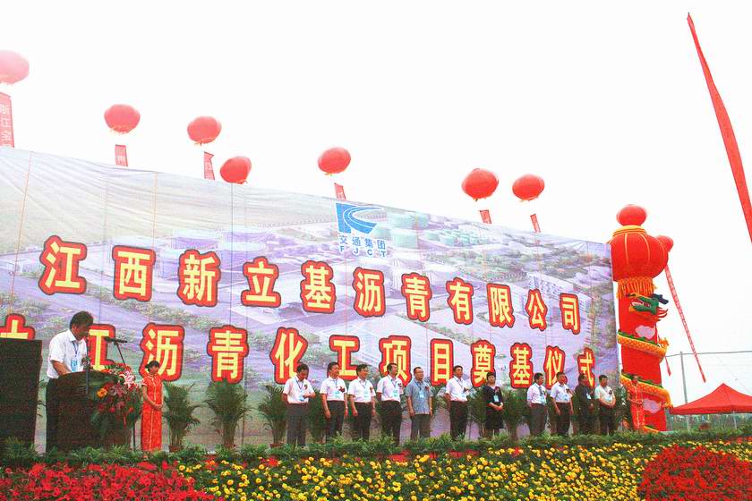 江西新立基沥青公司九江沥青化工项目的奠基,标志着福建交通集团、福建交通建设投资公司、388vip太阳集团公司致