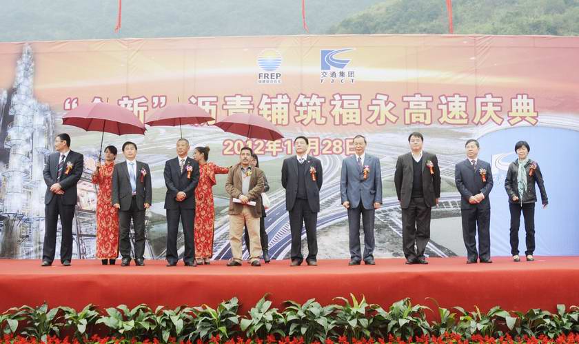 上午10时起,前来参加庆典活动的福建省交通厅、福建省高速公路有限责任公司、福建省交通运输集团、福建联合石油化工有限公司、福建省交通建设投资有限公司、福建省公路管理局、福建省交通建设质量安全监督局、福建省交通工程造价管理站、福建省交通科学技术研究所、福建省公路物资公司、福州市公路局、福州市交通建设集团有限公司、福建路桥建设有限公司、福建市政建设有限公司、福州福永高速公路有限责任公司、福建省南平市高速公路有限公司、福州京台高速公路有限责任公司、福州机场二期高速公路有限公司、中铁十二局集团第一工程有限公司、中铁十四局集团第一工程有限公司、中交一公局厦门工程有限公司、平潭翔通沥青混凝土有限公司、厦门路威道路工程有限公司、福建省景远建设工程有限公司等领导和来宾在威风锣鼓的阵阵锣鼓声中纷纷来到会场。