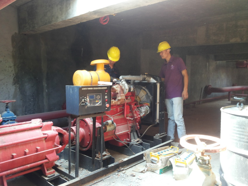 (生产部对消防泵房进行设备保养)