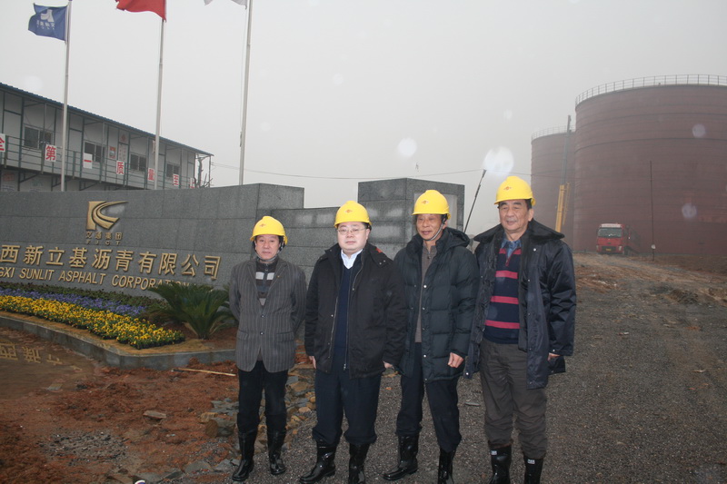 2014年元月8日上午10点,冒着冬日寒风细雨,福建省交通运输集团总经理李兴湖等领导一行在福建省交通建设投资有限公司总经理郭辉、副总经理朱勇进、江西新立基沥青有限公司董事长王绪泉的陪同下,前往江西新立基沥青有限公司化工物流仓储加工生产基地现场进行检查指导工作。