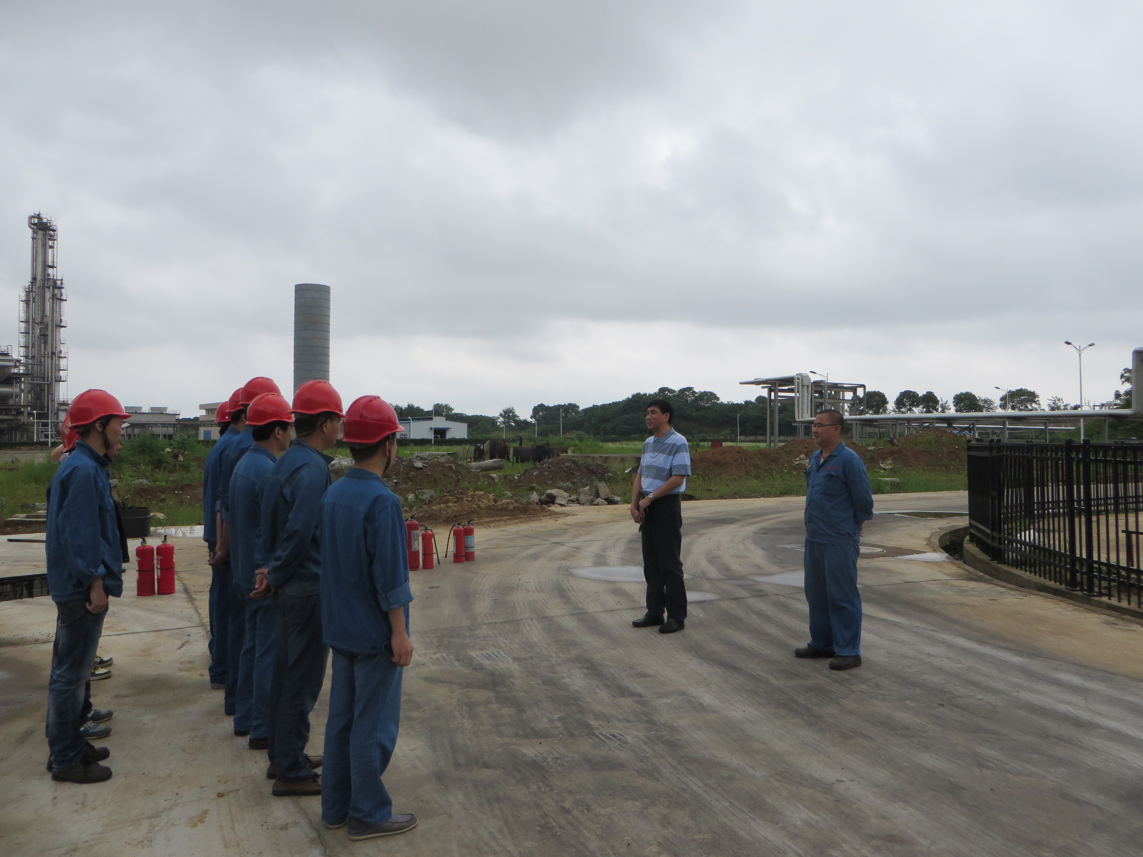 到达公司后,适逢江西新立基公司“2015年度安全应急救援演练”,本次演练是公司成立以来第一次安全应急演练,为了更好的总结经验和促进教育,本次演练邀请了长航九江消防支队的相关领导进行现场指导。邵副总在安环部主任颜伟敏的陪同下全程监督检查救援演练工作。