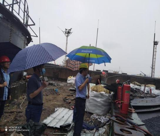 在吉安码头,总经理林影、纪委书记吴悦荣在码头进行安全检查,总经理林影要求码头作业要切实加强安全生产监管,雨季闽江汛期接船、施工时要全面做好码头防汛工作,备好防汛应急物资。