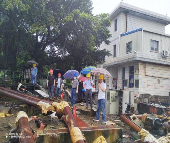 在泉港库区,总经理林影、副总经理吴稼民现场观摩防台防汛防泄漏应急演练。