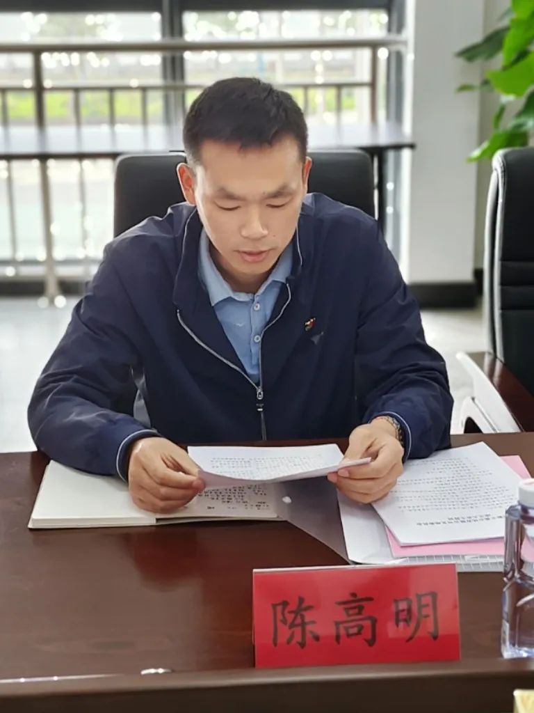 陈高明在大会上作表态发言:一是强化理论武装,提升政治素质。要深入学习贯彻党的二十大精神与实际工作相结合,认真贯彻执行党的各项路线方针政策,增强政治敏锐性和鉴别力,在思想上、行动上与党组织保持高度一致。二是扎实基层党建,发挥引领作用。要规范党内政治生活,加强组织建设,认真落实党内各项规章制度,扎实支部党建工作基础,充分发挥基层党组织战斗堡垒作用和党员先锋模范作用。三是强化党风廉政建设,增强廉洁自律自觉性。要用《中国共产党纪律处分条例》《中国共产党党内监督条例》《中国共产党党员领导干部廉洁从政若干准则》等有关规定严格要求自己,坚决抵制各种腐败思想的侵蚀,以身作则,廉洁从业。
