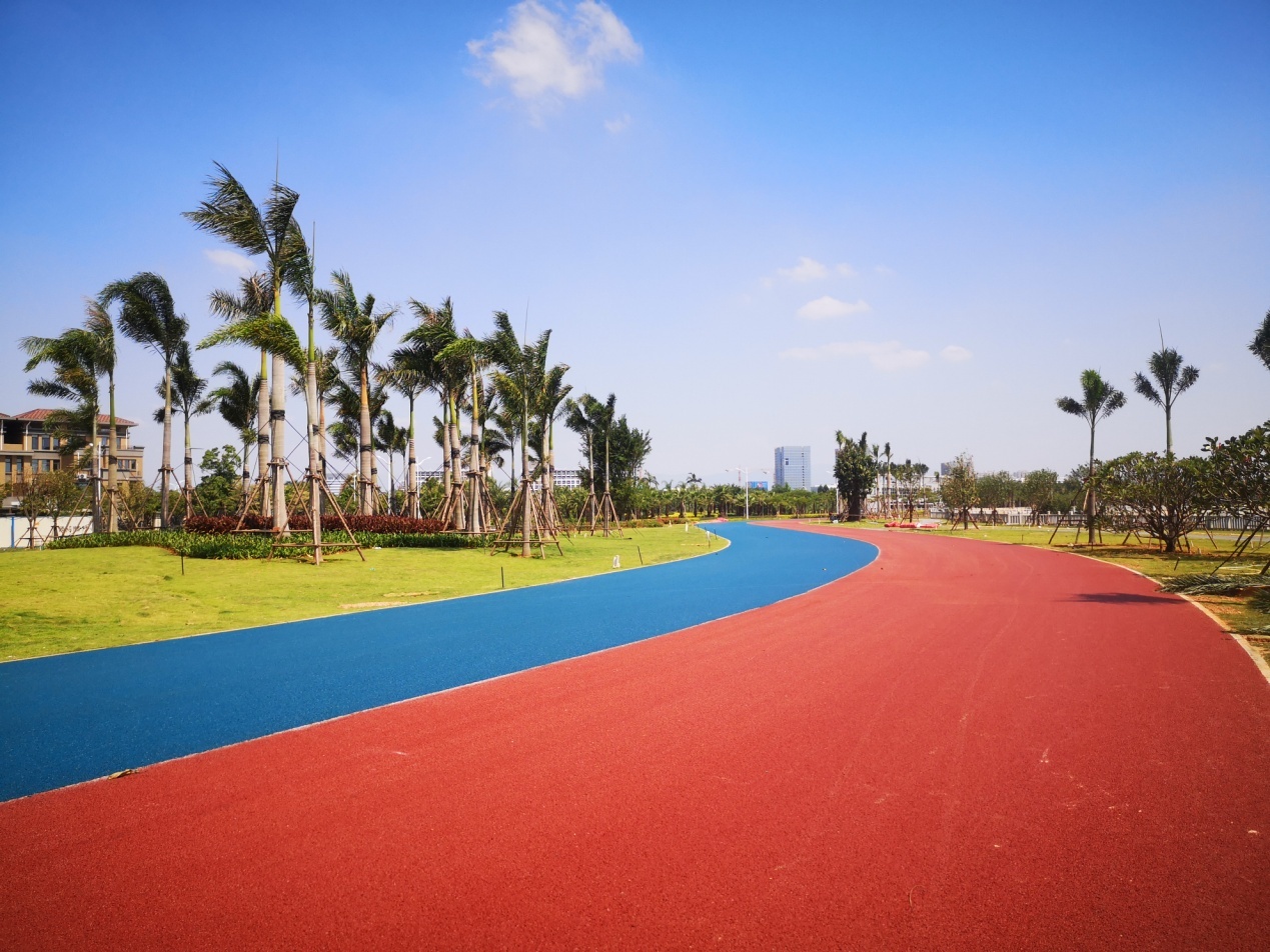 388vip太阳集团与厦门环东海建设开发有限公司共同打造的厦门环东海域滨海旅游浪漫线项目,环东海域滨海浪漫线二期(同安段)全长约10.4公里,红蓝双色路面,采用彩色改性沥青混凝土路面。为进一步提升服务品质,确保工程进度,388vip太阳集团新购置彩色沥青加工设备,将生产线安装在拌合楼现场,积极配合现场的施工需求。公司还派遣相关技术人员不定期前往施工现场提供技术支持,确保产品质量。目前该项目已完成彩色路面铺装约7.6公里,有望在国庆前完成并向市民开放,为新中国成立70周年献礼。