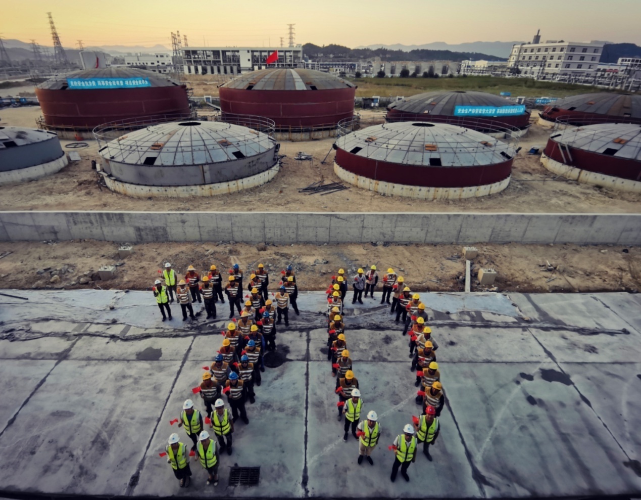 为庆祝中华人民共和国成立70周年,公司稳步推进泉州新立基沥青加工基地项目建设工作,项目现场人员挥洒汗水坚守在建设第一线,用实际行动向国庆献礼。目前项目已完成综合楼、SBS仓库和改性沥青生产车间等部分房建主体工程施工,正在开展沥青储罐现场制作安装。计划在年内完成项目所有房建单体施工,以及沥青储罐和配套工艺管道的安装工作。